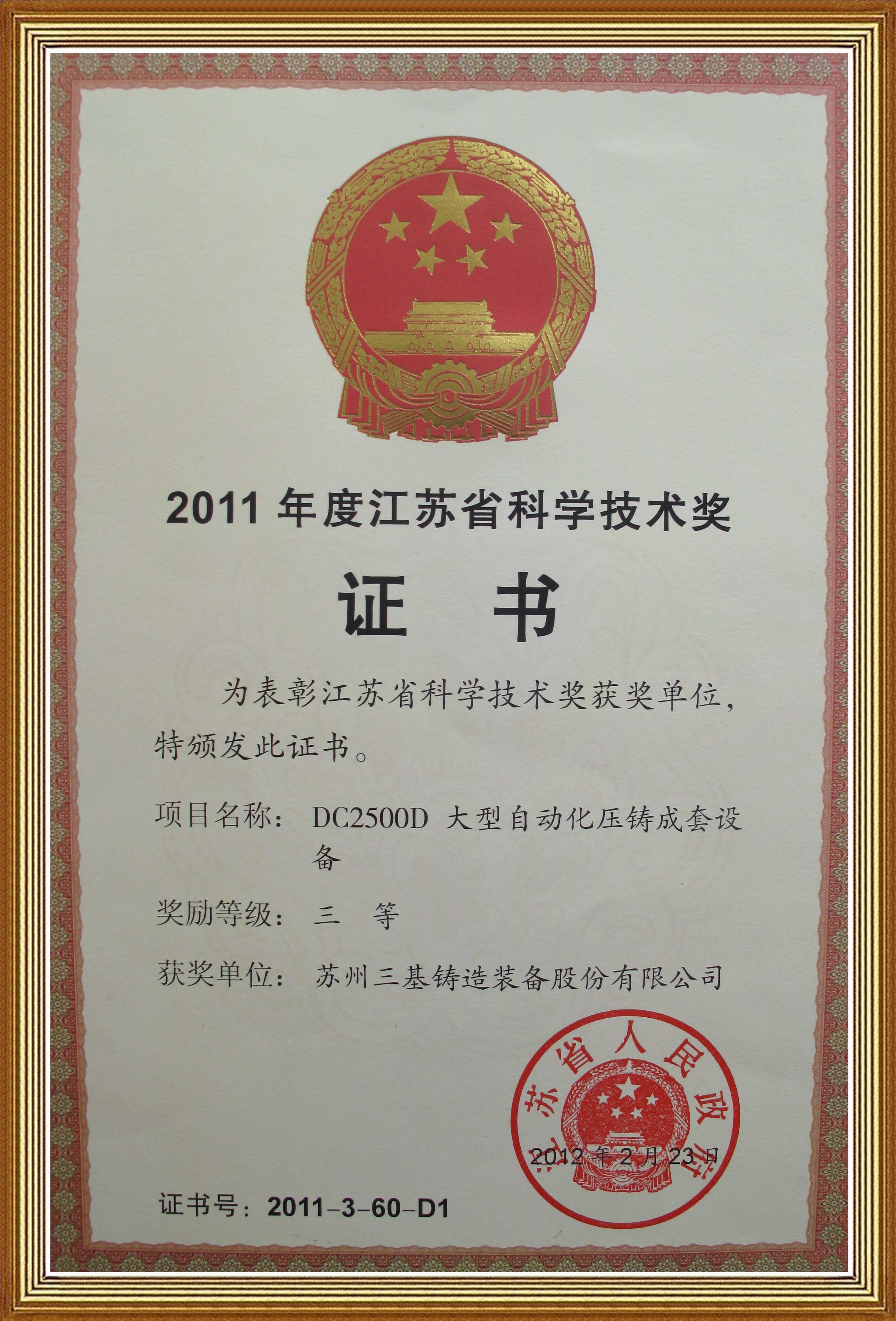 歷程23年,三基鑄造先后獲得了“江蘇省科技進(jìn)步獎(jiǎng)”、“江蘇省機(jī)械行業(yè)科技進(jìn)步”、“蘇州市科技進(jìn)步獎(jiǎng)”、“蘇州市雙杯獎(jiǎng)”、“國(guó)家重點(diǎn)新產(chǎn)品”、“江蘇省優(yōu)秀新產(chǎn)品”、"江蘇省優(yōu)秀新產(chǎn)品金獎(jiǎng)"等榮譽(yù)