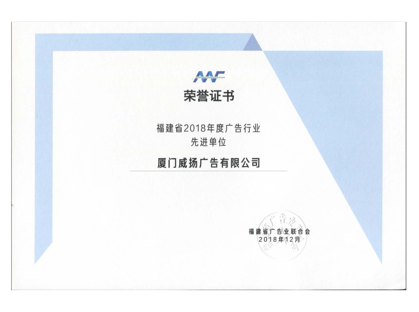 2018年度福建省廣告行業(yè)先進單位