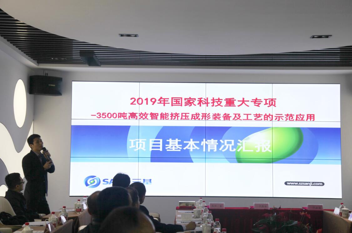 會議第二個議程,蘇州三基代表匯報了中國一汽和蘇州三基的合作情況以及2019年國家科技重大專項-3500噸高效智能擠壓成形裝備及工藝的示范應(yīng)用項目的基本情況。