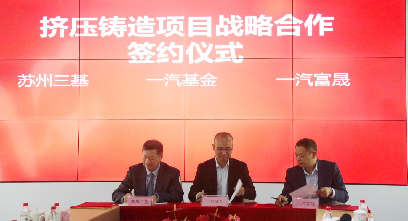 會議第三個議程,一汽基金、蘇州三基、一汽富晟等三家單位針對擠壓鑄造業(yè)務(wù)簽訂了擠壓鑄造項目戰(zhàn)略合作協(xié)議,未來將圍繞擠壓鑄造業(yè)務(wù)合作設(shè)立新公司,共同開拓擠壓鑄造汽車零部件業(yè)務(wù),目標重點針對紅旗品牌汽車零部件業(yè)務(wù)。