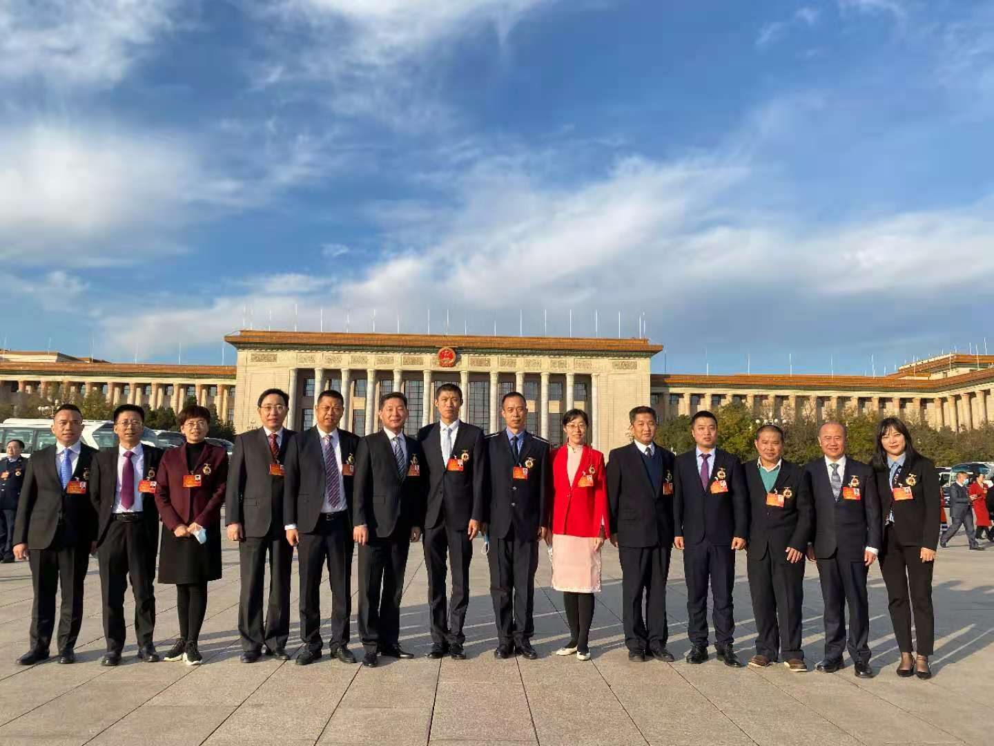 各位勞模代表在人民大會(huì)堂前合影(右3位為三基鑄裝施永祥師傅)