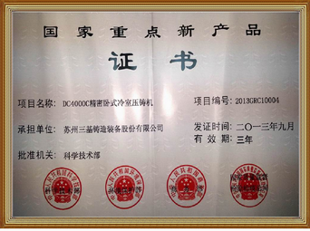 7我司自主研制的“DC4000C精密臥式冷室壓鑄機(jī)”獲得了國家重點(diǎn)新產(chǎn)品計(jì)劃的立項(xiàng)。這是暨“SCH-350A臥式擠壓鑄造機(jī)”獲得國家重點(diǎn)新產(chǎn)品技術(shù)立項(xiàng)之后的第二個(gè)產(chǎn)品獲得此項(xiàng)目的立項(xiàng)。