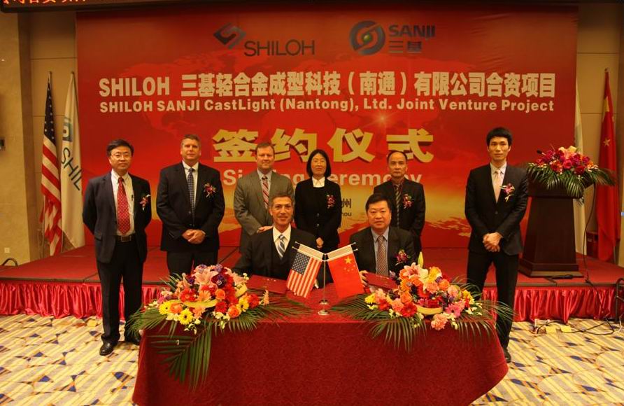 2015418,在美麗的太湖之濱頤舍溫泉酒店,蘇州三基鑄造裝備股份有限公司和美國SHILOHINDUSTRIES 公司成功舉行了“SHILOH-三基輕合金成型科技(南通)有限公司合資項目”簽約儀式。