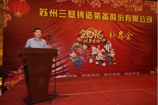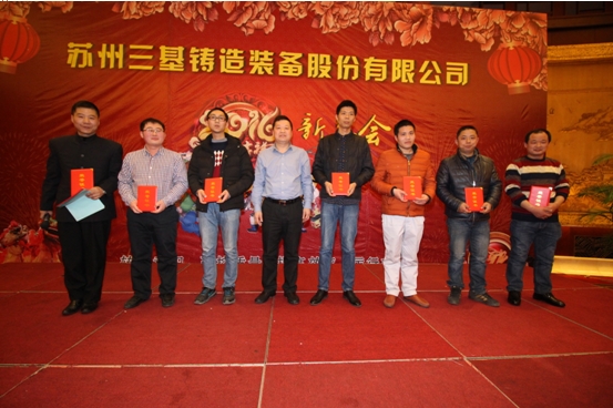 2016.2.3日晚,蘇州三基鑄造裝備股份有限公司在東山國賓館舉行了氣氛熱烈、情誼濃濃的2016新年會。新年會分為公司領(lǐng)導(dǎo)致辭、表彰先進、員工宴會及抽獎活動幾個環(huán)節(jié)。